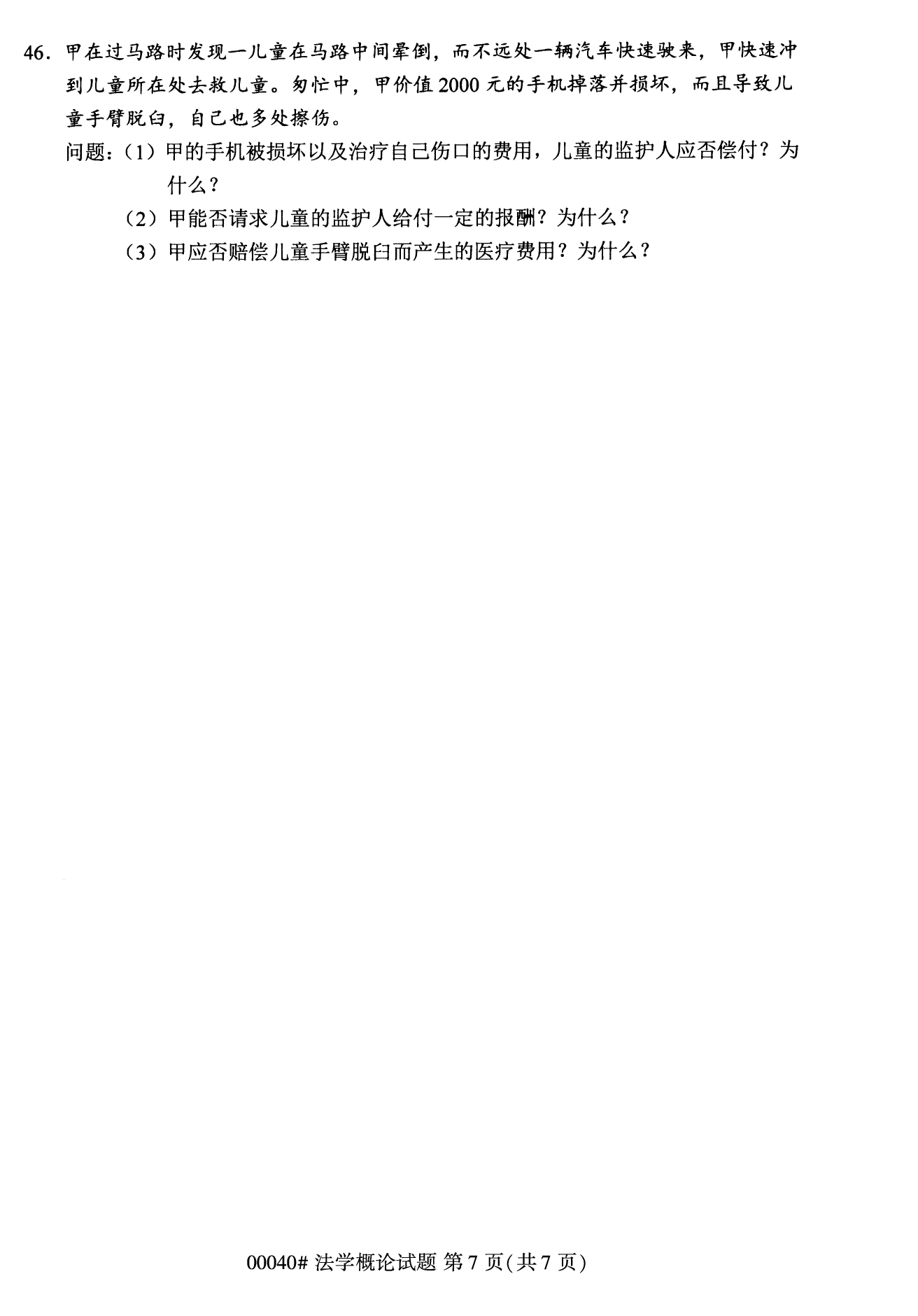 2022年10月重慶自考00040法學概論試卷